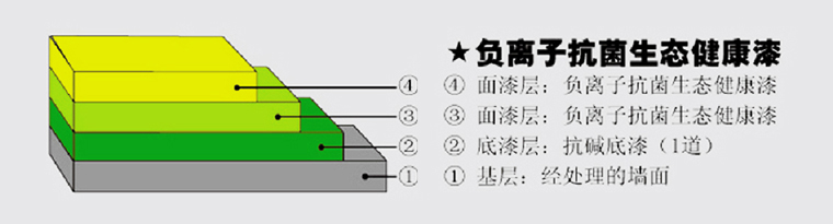 好雅麗負(fù)離子抗茵生態(tài)健康漆采用世界前沿的納米超細(xì)加工技術(shù),從天然礦石中制取納米級(jí)電晶體,經(jīng)過先進(jìn)的納米分散技術(shù),將納米級(jí)電晶體與涂料有機(jī)的結(jié)合在一起:具有永久的電極,在常溫下無需日光及太陽(yáng)光線照射即可分解空氣中的水分子,產(chǎn)生大量的空氣負(fù)離子,且無臭氧產(chǎn)生,對(duì)人體不但無副作用,而且能起保健作用,促進(jìn)人體新陳代謝。凈化空氣,呼吸更清新,負(fù)離子抗菌生態(tài)健康漆通過光催化作用,徹底分解和吸收空氣中的一氧化碳、氮?dú)浠衔锛捌渌卸居泻ξ镔|(zhì)和揮發(fā)性有機(jī)物質(zhì),讓您猶如生活在清新大森林中。通過中國(guó)建筑材料工業(yè)環(huán)境監(jiān)測(cè)中心測(cè)試:靜態(tài)法負(fù)離子測(cè)試儀測(cè)試空氣負(fù)離子平均增加量為815個(gè)/cm3。