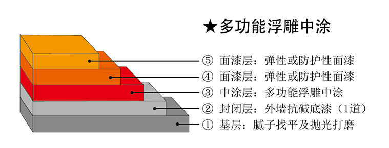 適用于建筑墻體浮雕復(fù)層涂層的中間層凹凸造型;